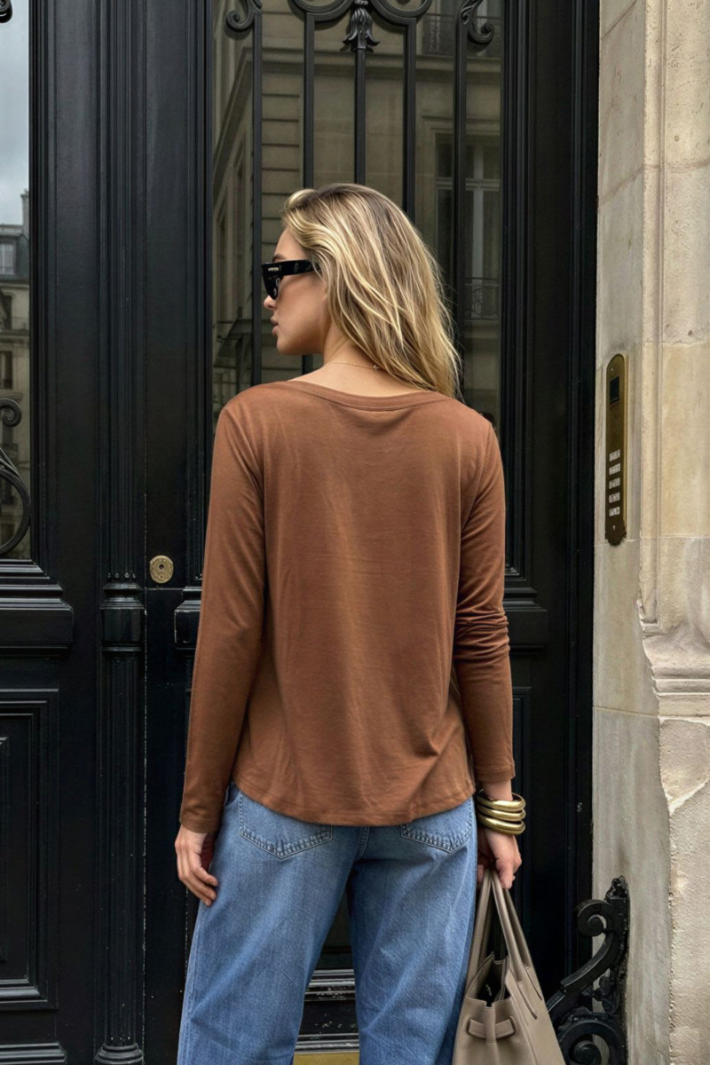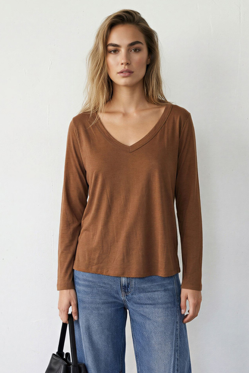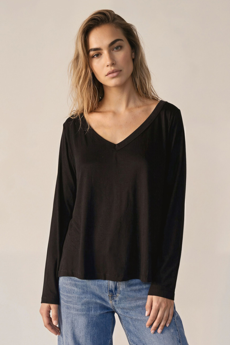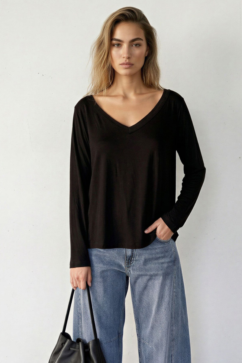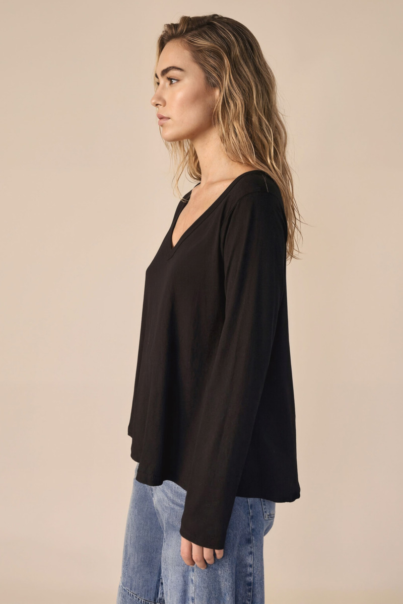 Remera de corte clásico, diseñada para ofrecer un calce cómodo y tradicional. El modelo Miró cuenta con mangas largas y se destaca por su escote en V profundo, un detalle que aporta estructura y estiliza la silueta manteniendo un diseño limpio.